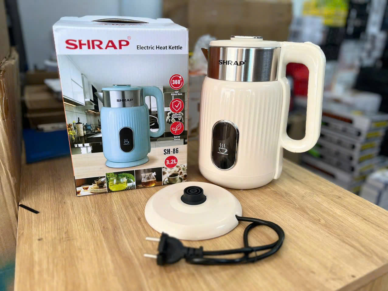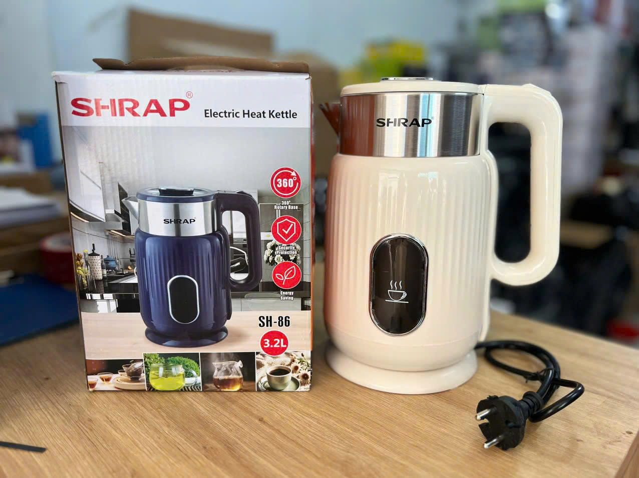 - Giới thiệu ấm siêu tốc SHRAP 3,2L SH86 - một thiết bị gia dụng thiết yếu cho mọi gia đình, mang đến sự tiện lợi và nhanh chóng trong việc đun nước, pha trà hay nấu ăn. Với thiết kế hiện đại, tính năng thông minh và dung tích 3,2 lít, sản phẩm này hứa hẹn sẽ đáp ứng nhu cầu sử dụng của bạn một cách tối ưu nhất.