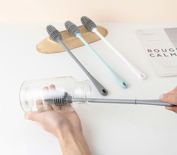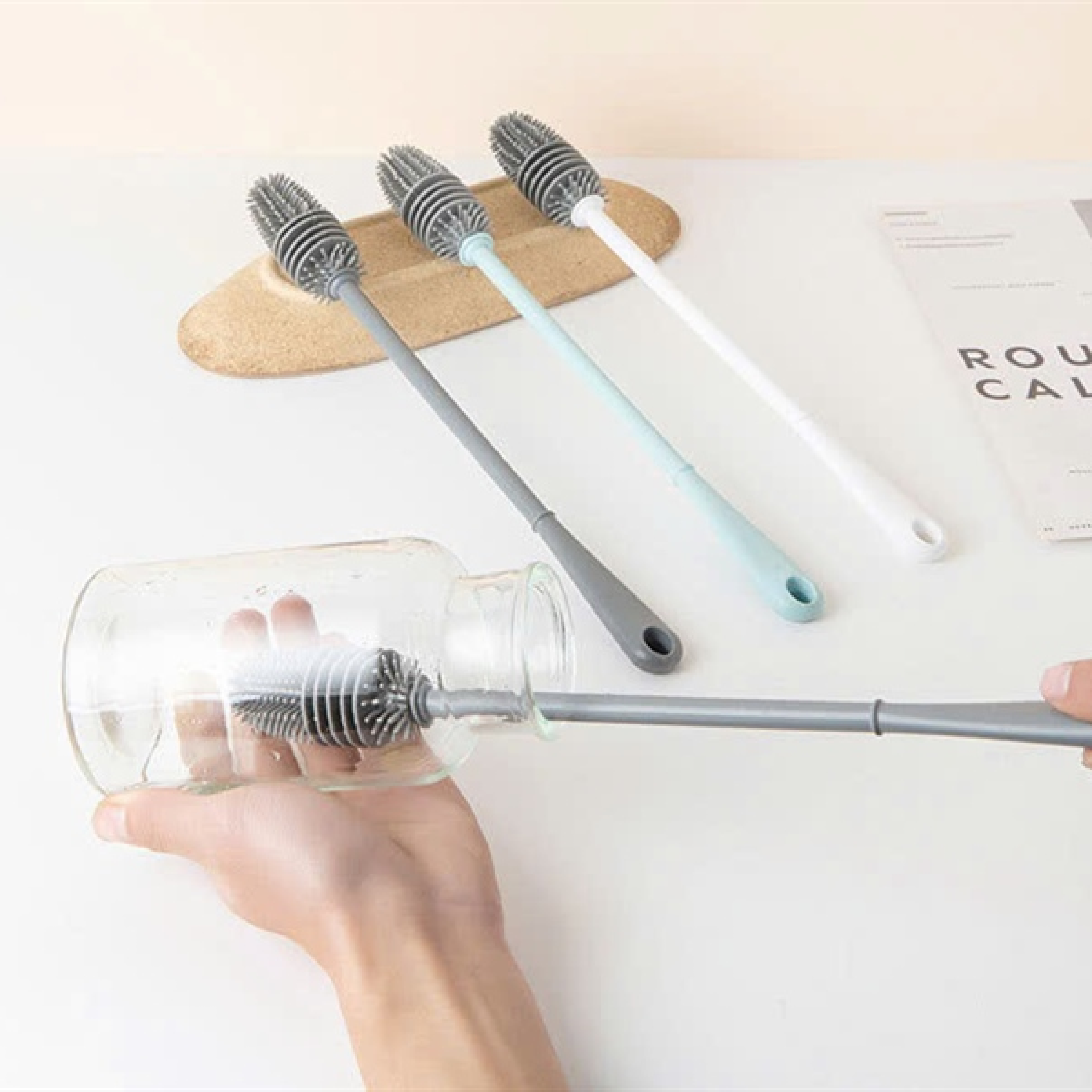BÀN CHẢI SILICON VỆ SINH CỐC TAY CÁN CẦM DÀI