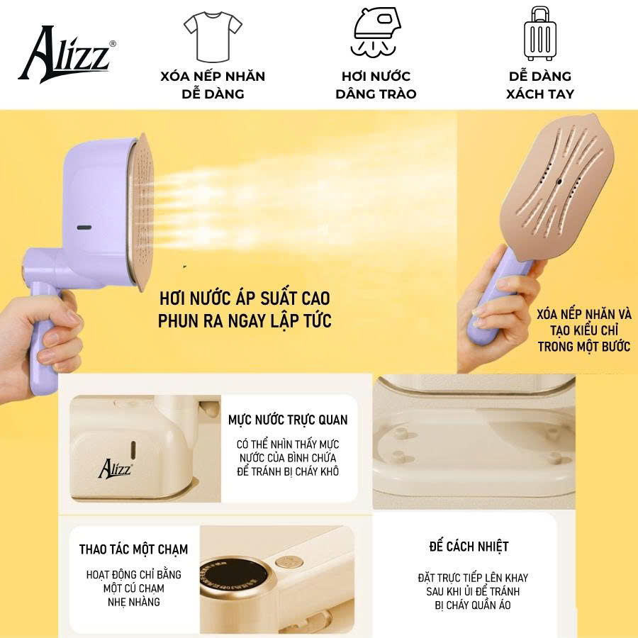 - Kích thước mini, dễ mang theo: Với thiết kế nhỏ gọn, máy rất tiện lợi để mang theo khi đi du lịch hoặc công tác, giúp bạn luôn có quần áo gọn gàng và phẳng phiu.