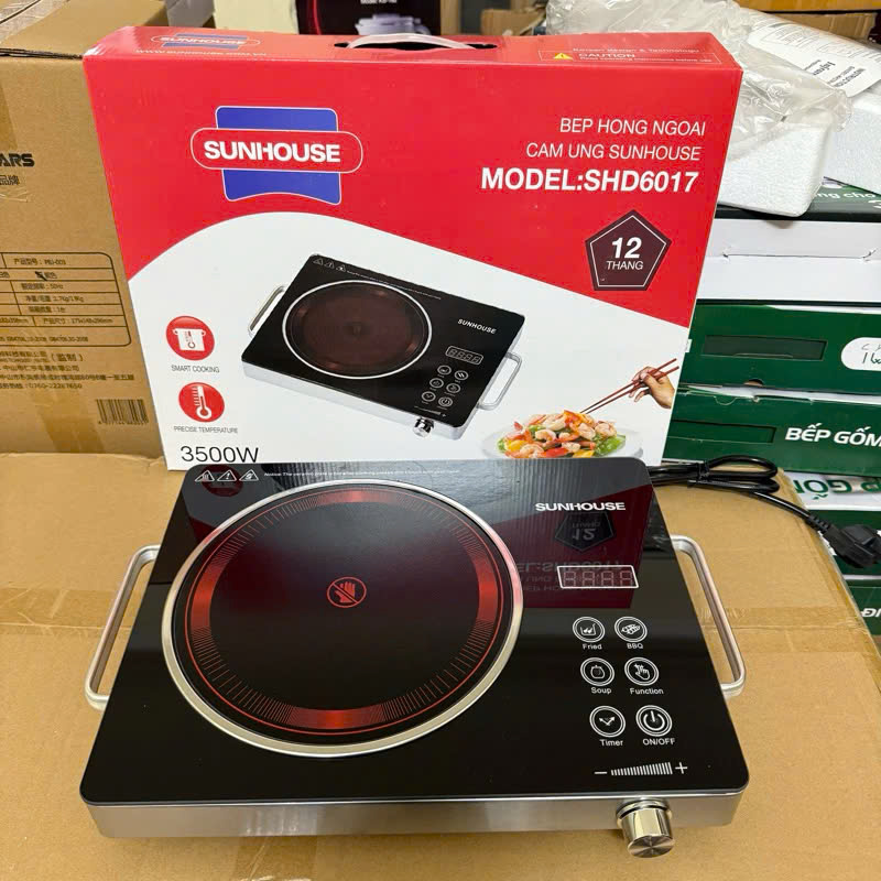 - Bếp hồng ngoại Sunhouse SHD 6017 mặt bếp có độ bền cao, luôn sáng bóng, đẹp mắt nên giúp làm tăng nét đẹp sang trọng cho mọi không gian bếp.