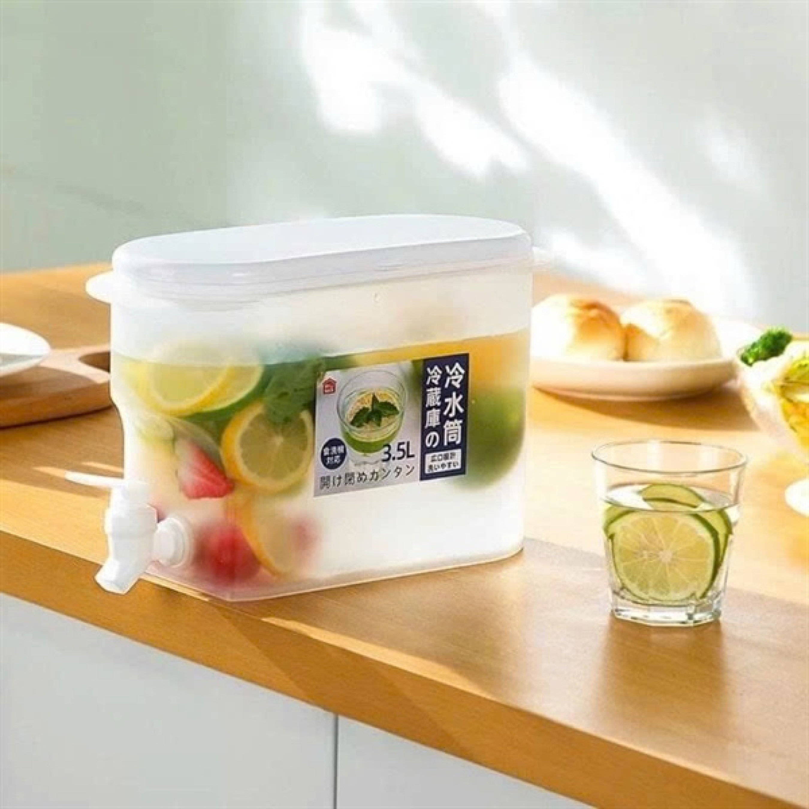 - Bình đựng xuất xứ Nhật Bản có vòi dung tích 3.5l dùng để đựng nước, nước hoa quả siêu tiện lợi, dễ dàng vệ sinh Nhựa an toàn với