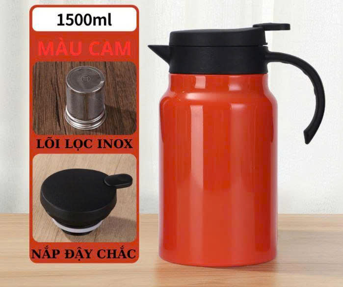 - Tên sản phẩm: Bình Pha Trà Giữ Nhiệt Inox 1500ml – Pha Trà Lõi Lọc, Giữ Nhiệt 12h, Nắp Vặn Chống Tràn
