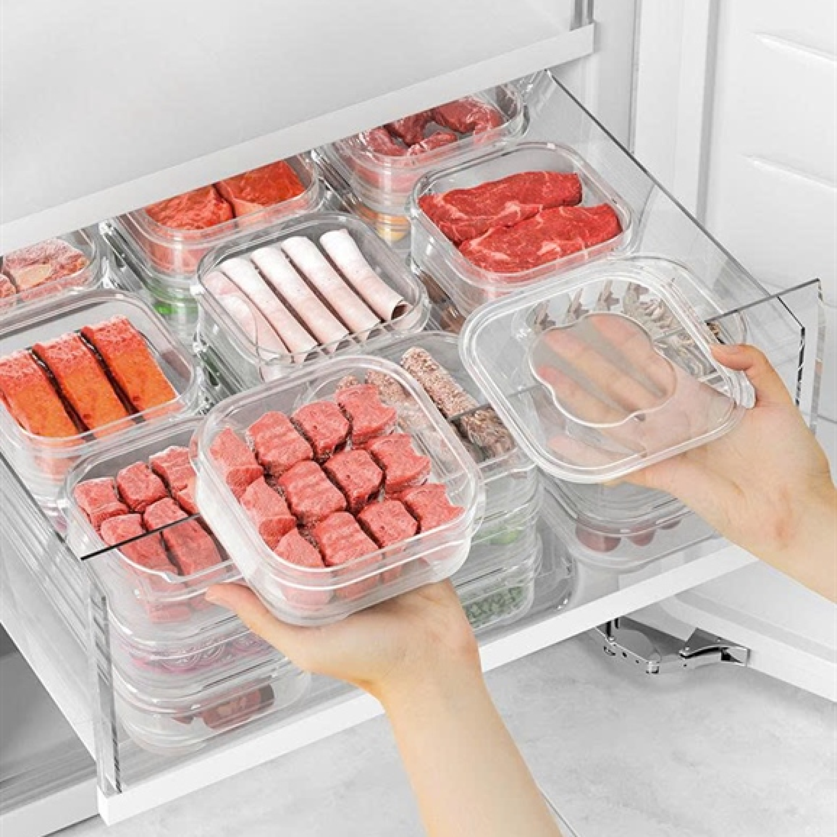 - Thiết kế gọn nhẹ, dễ xếp chồng, tiết kiệm không gian tủ lạnh.
