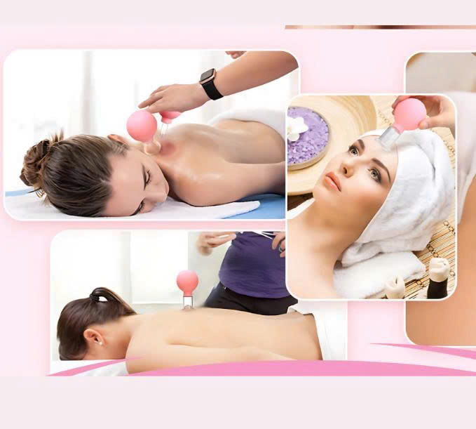 - Thiết kế bộ 4 cốc giác hơi kích thước đa dạng phù hợp massage nhiều vùng trên khuôn mặt
