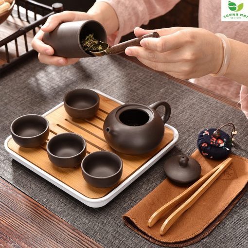 - Bộ Ấm Chén Du Lịch Tử Sa 12 Món
