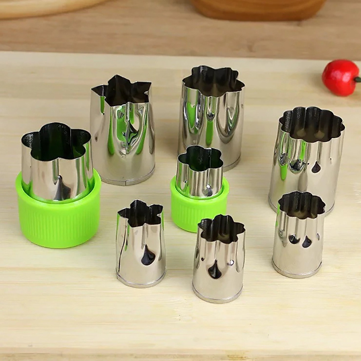 - Bộ sản phẩm gồm 8 khuôn cắt inox tạo hình với nhiều hình dáng như hình hoa, hình sao...