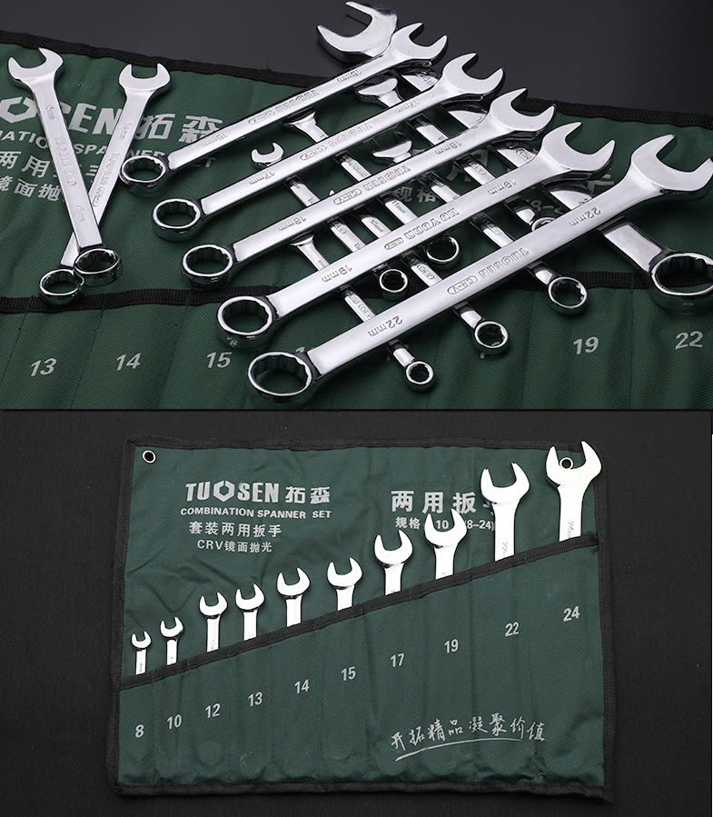 - Là bộ sản phẩm tiện dụng mà ai cũng nên sở hữu 1 bộ cho gia đình mình. Ưu điểm của bộ đồ nghề này là một đầu miệng có ngàm cố định nên sẽ hạn chế được vấn đề trượt khi thao tác. Một đầu vòng được thiết kế thẳng với thân tạo thành góc xéo với thân để tạo khoảng hở khi sử dụng để siết chặt đai ốc.