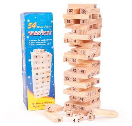 - Bộ sản phẩm gồm : 54 thanh gỗ và 4 hột xí ngầu với rất nhiều màu sắc rực rỡ.