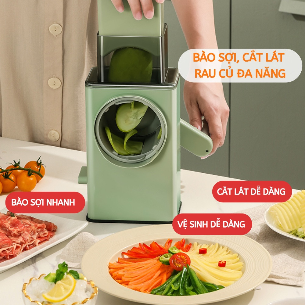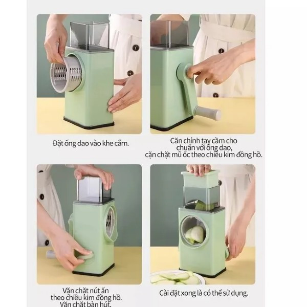 - Chỉ cần chọn dụng cụ phù hợp với từng loại rau củ, đặt nó lên mặt phẳng và thao tác bào, thái, cắt theo hướng dẫn. Sau khi sử dụng, chỉ cần rửa sạch và để khô, sản phẩm sẽ được bảo quản lâu dài.
