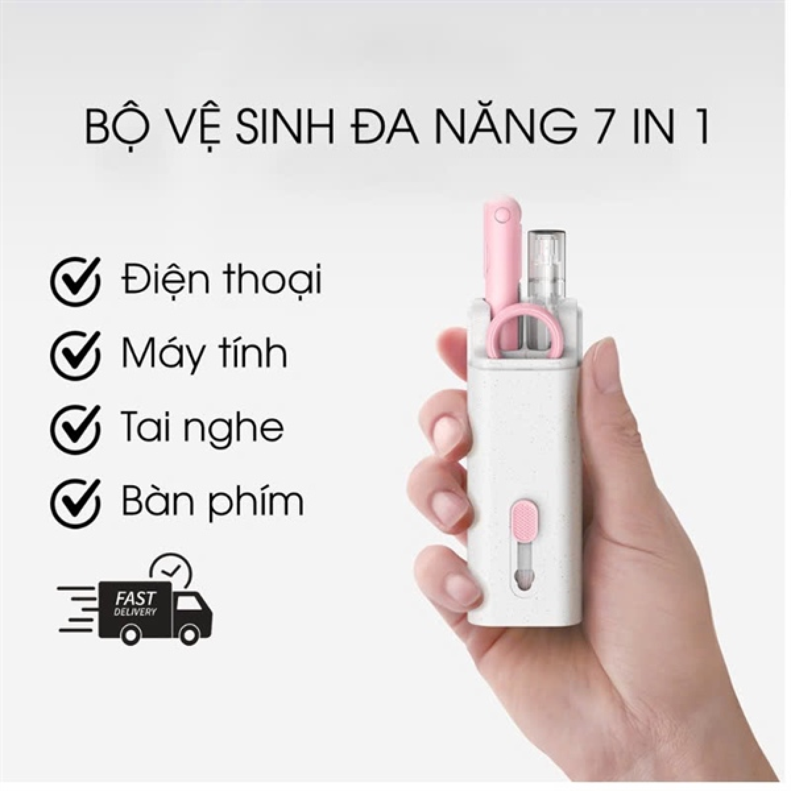 - Bộ dụng cụ vệ sinh bàn phím laptop 7in1 là giải pháp hoàn hảo giúp bạn giữ cho bàn phím và các thiết bị công nghệ luôn sạch sẽ, hoạt động hiệu quả và bền bỉ theo thời gian. Thiết kế đa năng, tiện lợi với 7 món dụng cụ chuyên biệt, phù hợp với nhiều nhu cầu vệ sinh khác nhau từ bụi bẩn, mảnh vụn nhỏ đến dấu vân tay hay các vết dầu mỡ.