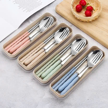 - Bộ gồm đũa, thìa và dĩa inox rất đẹp cán nhựa, đựng trong 1 hộp nhựa lúa mạch sang trọng. Dùng mang cơm đi làm, mang đi du lịch hay picnic tiện lợi.