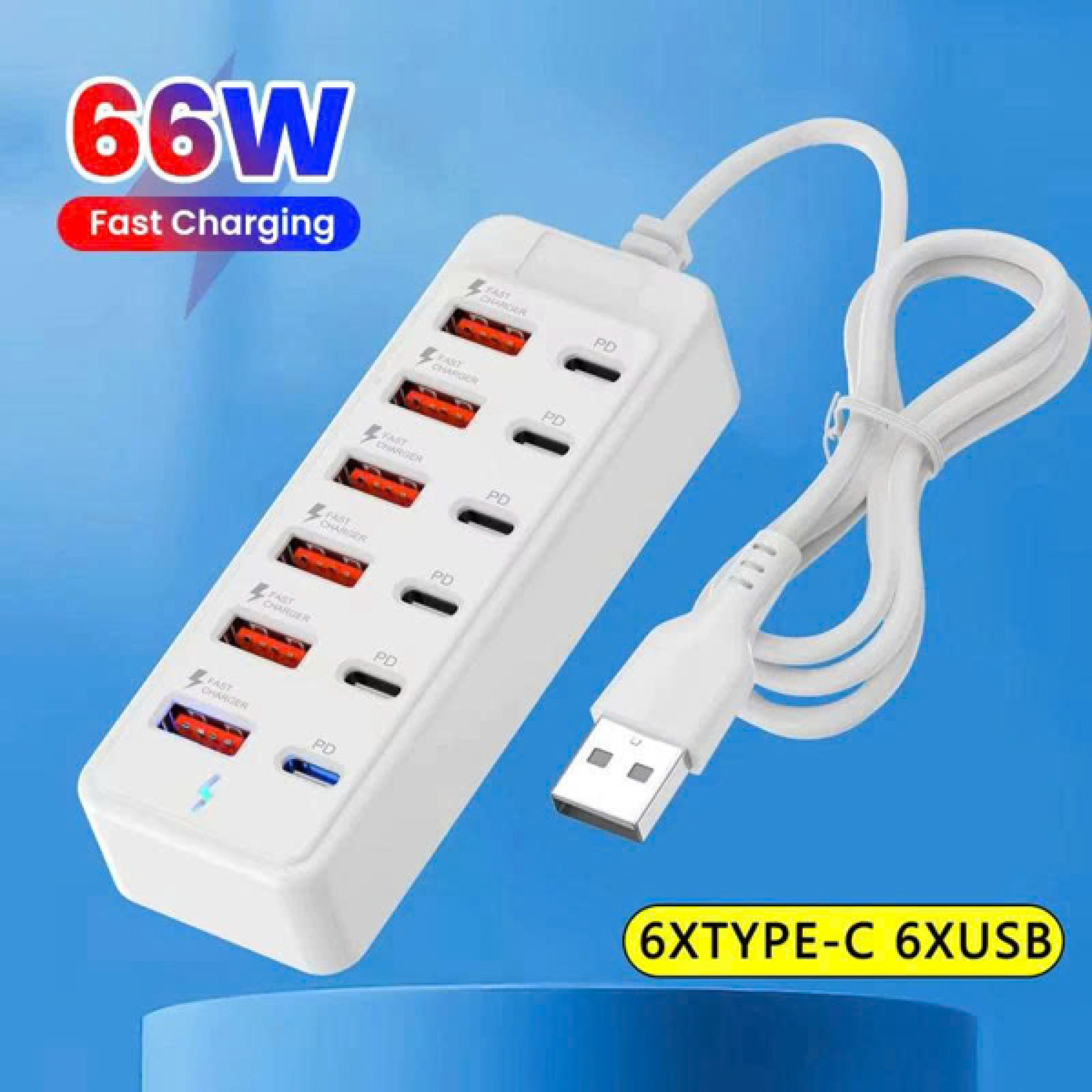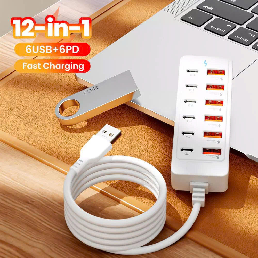 BỘ SẠC Ổ CẮM 12 TRONG 1 6 USB + 6TYPE C