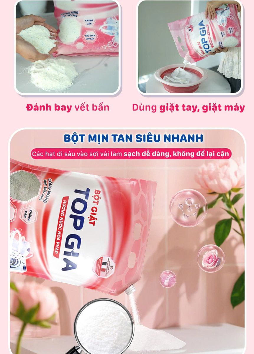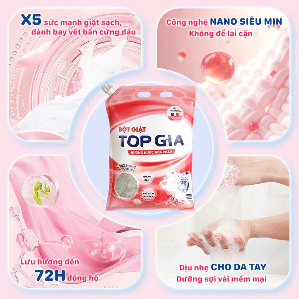 - Tên sản phẩm: Bột giặt hương nước hoa Pháp Topgia