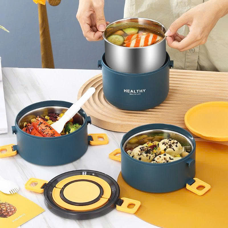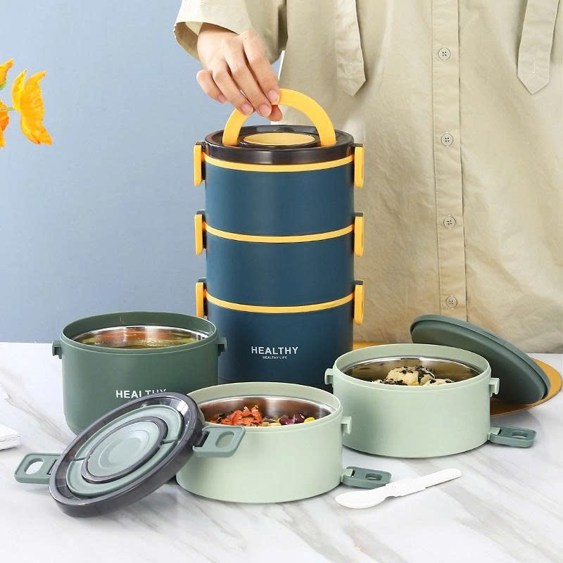 - Thiết kế tròn, 2-3 tầng có dung tích lớn, linh hoạt, không lo phải chia thành nhiều hộp nhỏ cồng kềnh. Ở mỗi tầng có phần nắp riêng chống rò rỉ nước, giúp bạn thoải mái xách đi và di chuyển.