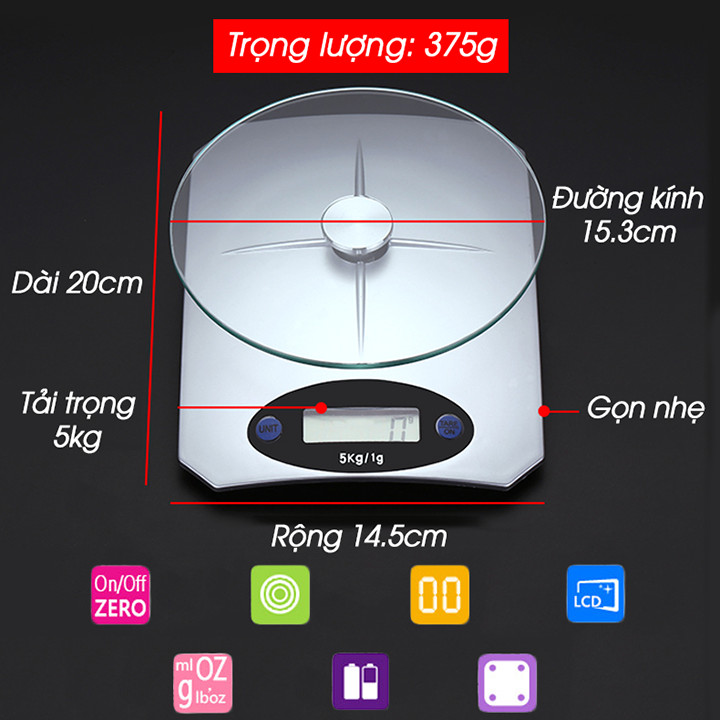 - CÂN ĐIỆN TỬ 5KG MẶT KÍNH