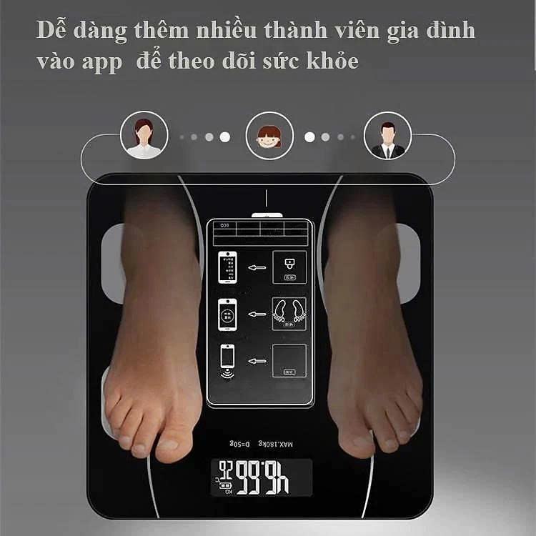 - Cân sức khỏe, cân điện tử sức khỏe thông minh kết nối điện thoại, phân tích lượng mỡ, tối đa 180kg, giao màu ngẫu nhiên