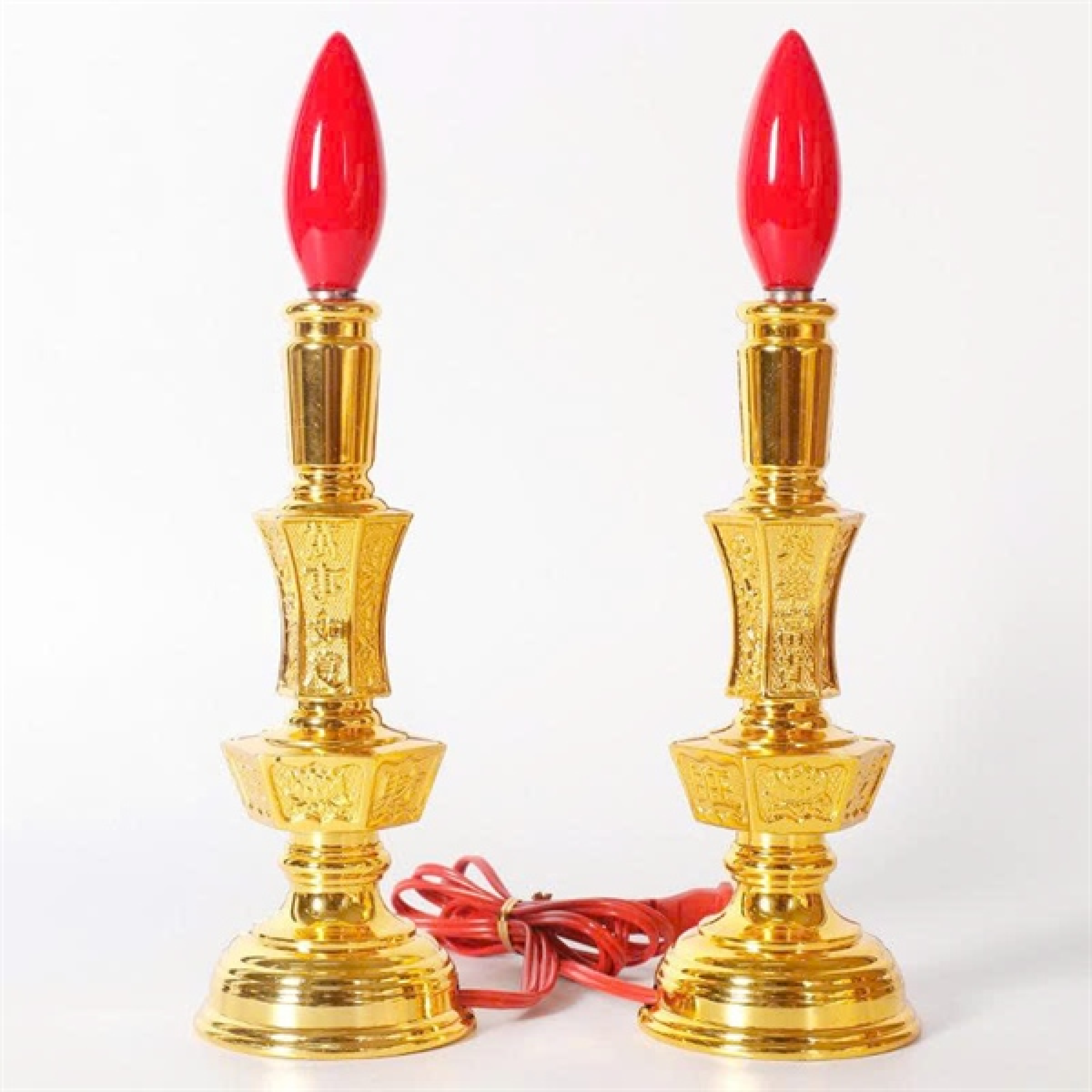 CẶP ĐÈN THỜ ĐẾ VÀNG BÓNG ĐỎ