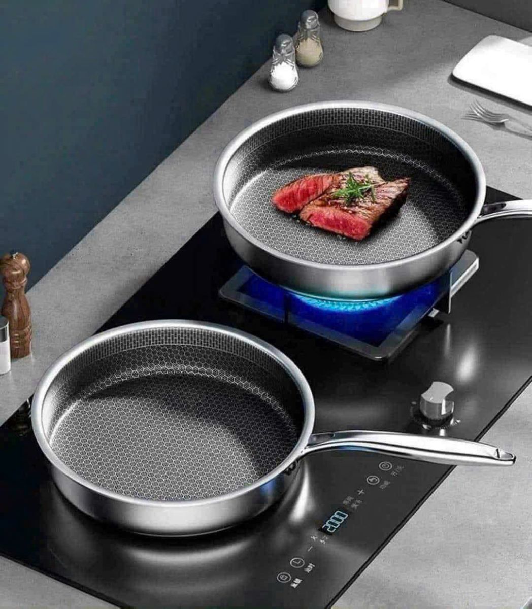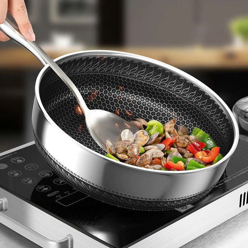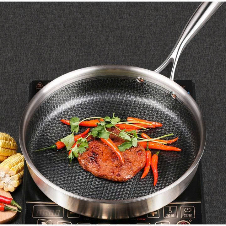 - Chảo chống dính 5 lớp inox 304 công nghệ khắc laser tổ ong 28cm ĐÁY BẰNG (chuyên rán, áp chảo) hàng nội địa Trung Quốc