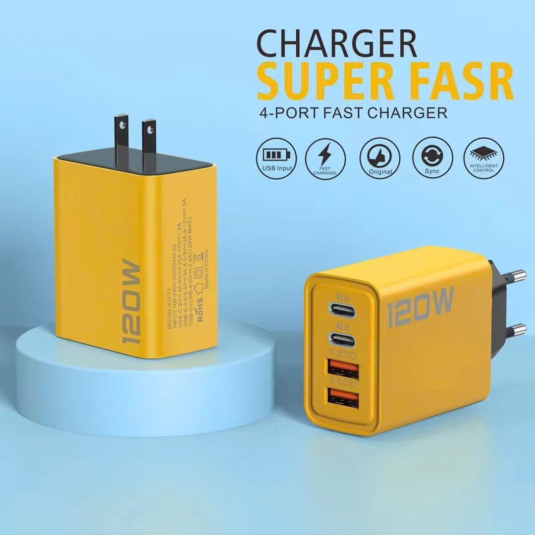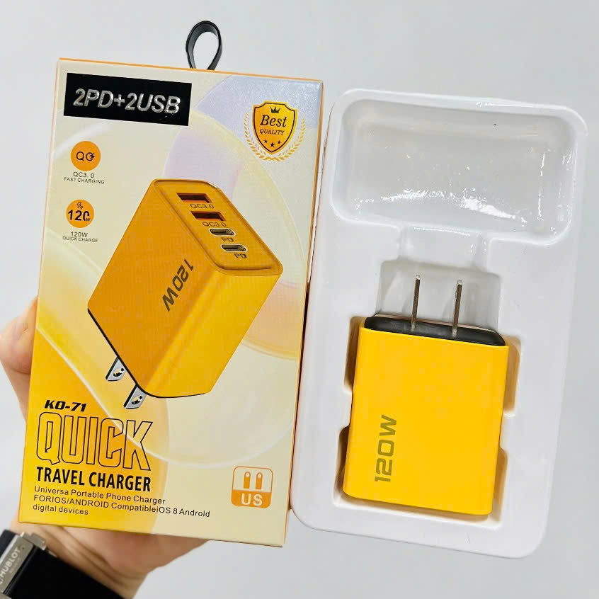 - Cốc sạc PD120W 4 cổng là giải pháp tuyệt vời cho những ai cần sạc nhiều thiết bị cùng lúc với công suất mạnh mẽ và khả năng sạc nhanh. Với thiết kế nhỏ gọn và công nghệ tiên tiến, sản phẩm này sẽ giúp bạn tiết kiệm thời gian và tối ưu hóa hiệu quả sử dụng.