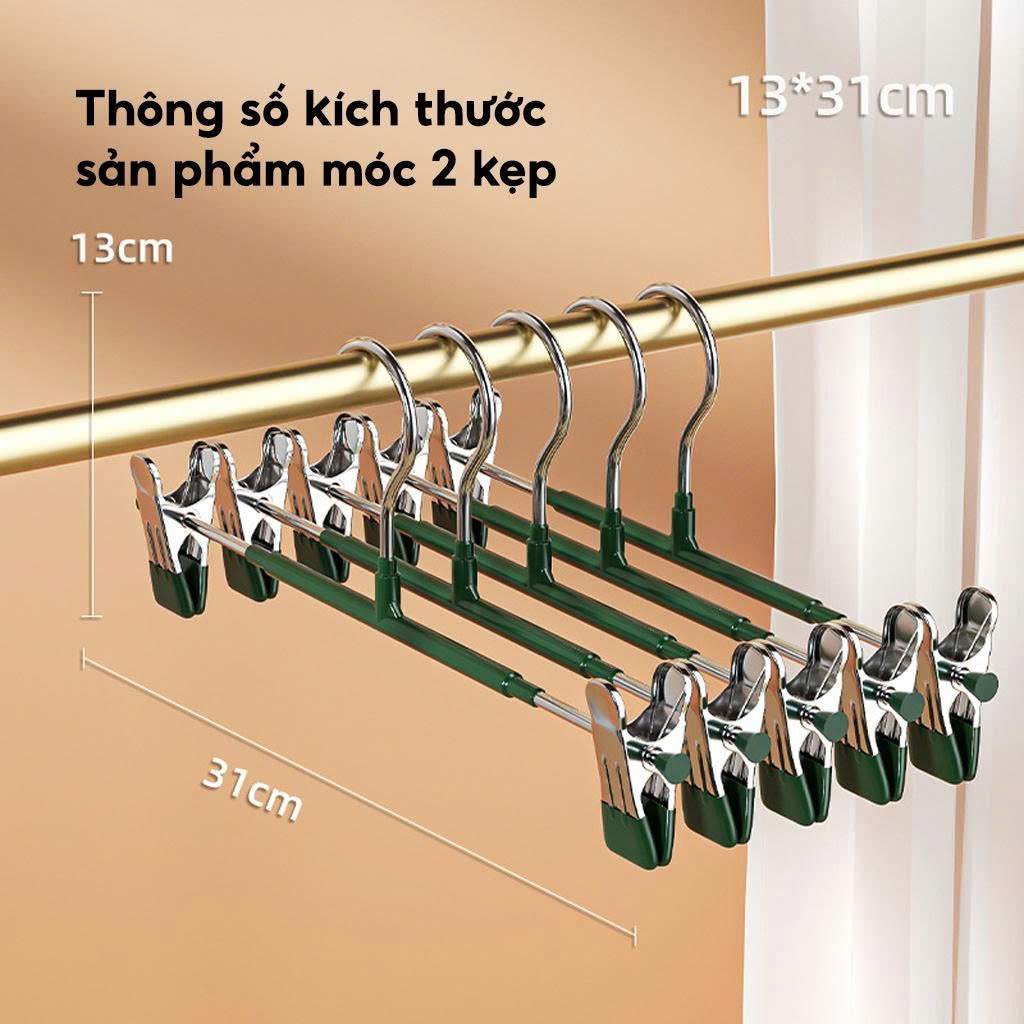 - Giới thiệu COMBO 10 MÓC KẸP QUẦN ÁO 2 ĐẦU – giải pháp hoàn hảo để giữ cho trang phục của bạn luôn thẳng thớm và gọn gàng! Được thiết kế đặc biệt cho những ai yêu thích sự tiện ích và hiệu quả trong việc bảo quản quần áo, bộ móc kẹp này sẽ trở thành trợ thủ đắc lực trong tủ đồ của bạn.