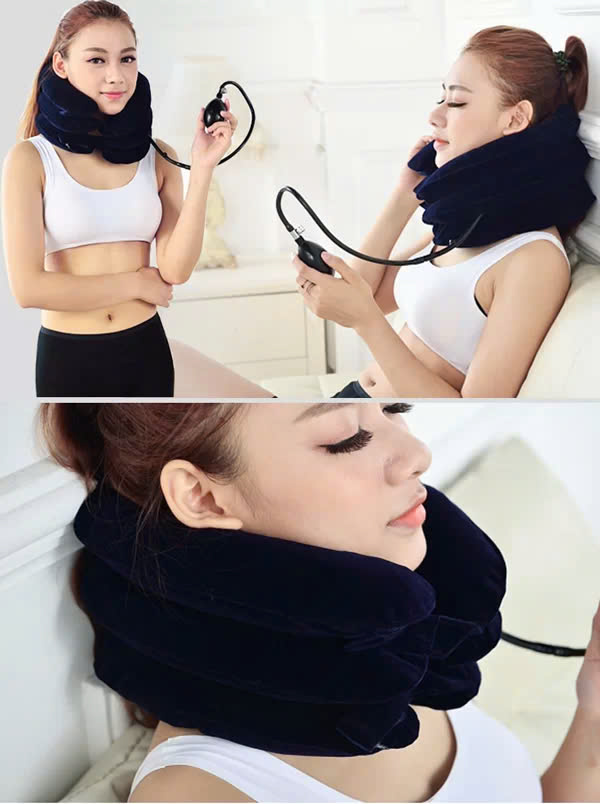Nguyên lý hoạt động: Khi bơm hơi vào đai, các túi khí sẽ phồng lên, tạo ra một lực kéo giãn nhẹ nhàng giữa đầu và vai. Lực kéo này giúp:
