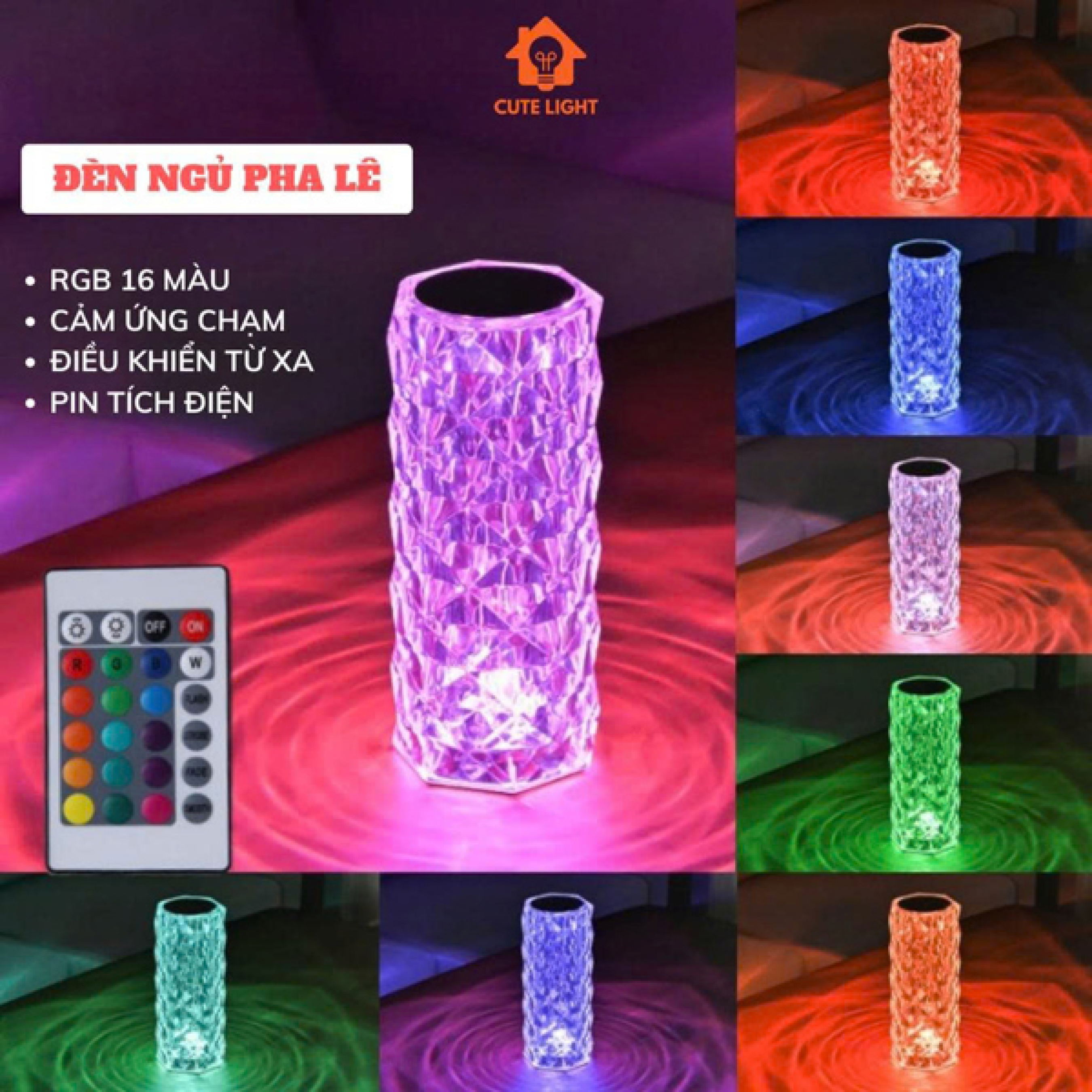 - Đèn Pha Lê Để Bàn Ánh Sáng Kim Cương Cảm Ứng 16 Màu Trang Trí Phòng Ngủ