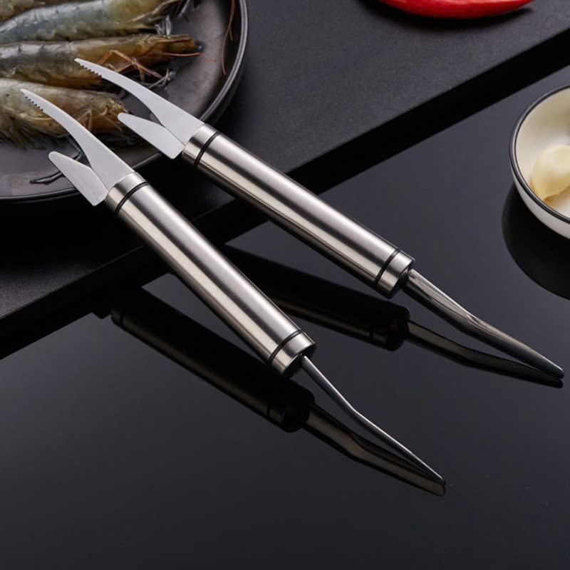– Dao giúp lột vỏ tôm, rạch lưng tôm, lấy chỉ lưng, bụng tôm nhanh gọn.