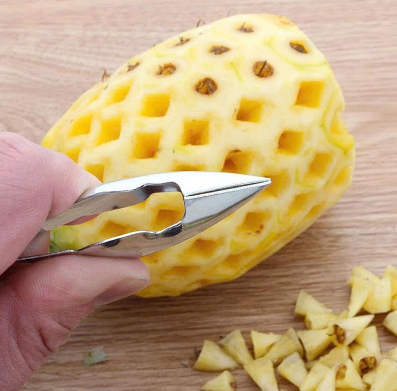 - Là một loại quả được ưa chuộng trong những ngày hè, khi ăn dứa chúng ta sẽ cảm nhận được sự mát mẻ. Cùng với dụng cụ Kẹp Cắt Mắt Thơm Nhanh Gọn Bằng Thép Loại 1 để tạo ra các món ăn ngon được làm từ dứa.