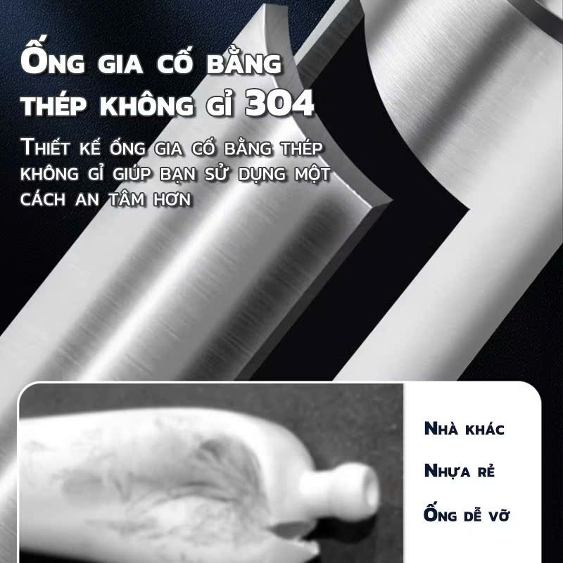 - Cấu trúc sản phẩm: Bao gồm 1 thân súng, 1 chân vịt, 3 đầu thông tương thích với các loại bồn khác nhau