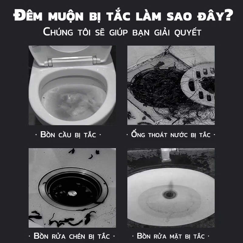 - Phạm vi ứng dụng: Thông tắc bồn cầu, chậu rửa bát, bồn tắm,....