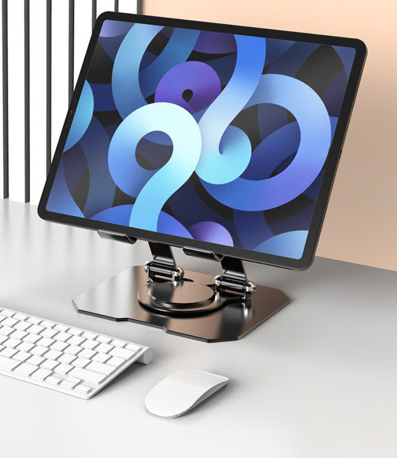 - Khớp xoay 360 với các nấc bánh răng chuyên biệt, dễ dàng cân chỉnh góc mong muốn nhất. Đặc biệt là có thể kê rất thấp, hỗ trợ việc viết vẽ chuyên dụng với bút cảm ứng.