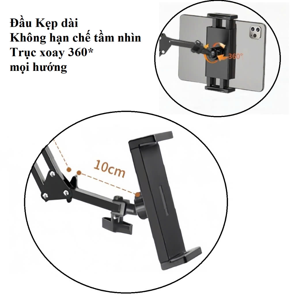 - Giá đỡ điện thoại, ipad xem phim kẹp treo thành giường, thành bàn bàn
