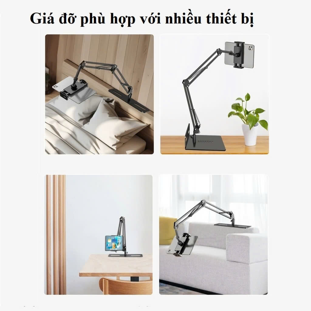 - Sản phẩm Giá đỡ điện thoại, ipad xem phim kẹp đầu giường, bàn giúp bạn giải phóng đôi tay, tự do thư giãn đọc báo, xem phim. Sản phẩm được thiết kế chắc chắn, linh động có thể dễ dàng lắp ghép và điều chỉnh trong khi sử dụng.