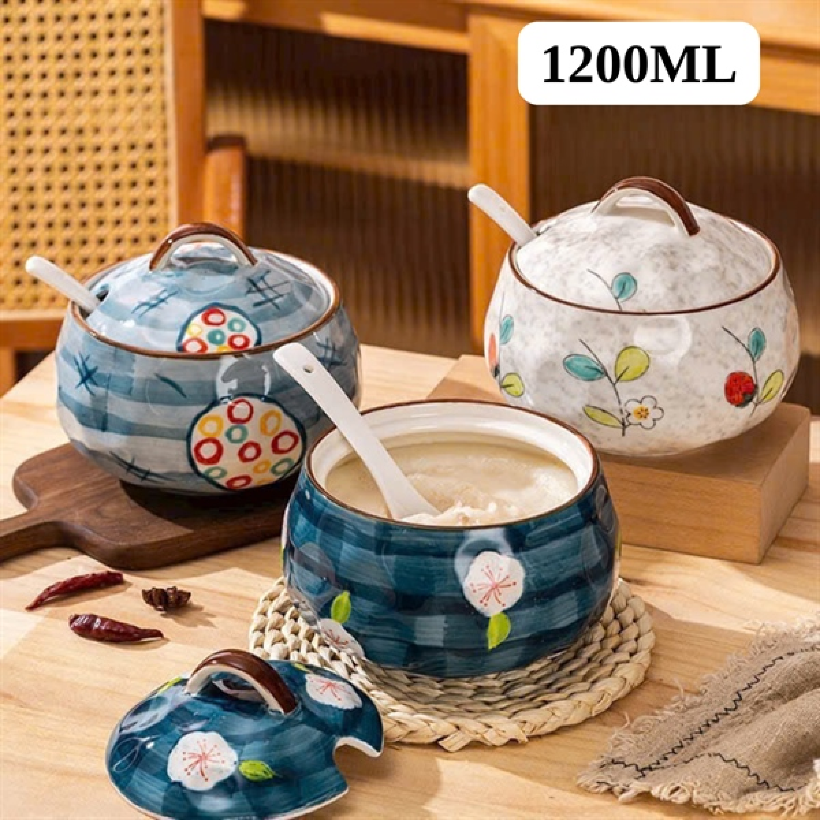 HỦ SỨ ĐỰNG MỠ PHONG CÁCH NHẬT 1200ML