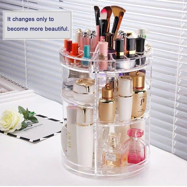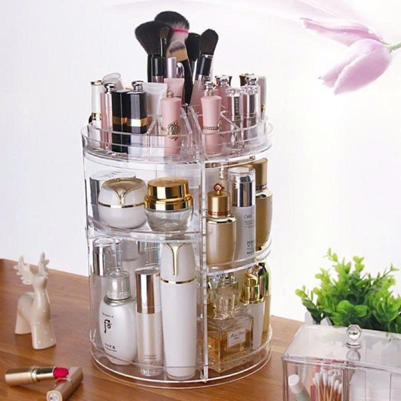 - Kệ đựng mỹ phẩm xoay 360 độ là giải pháp hoàn hảo cho những ai yêu thích làm đẹp và muốn tổ chức không gian sử dụng mỹ phẩm một cách hiệu quả và ngăn nắp. Với thiết kế thông minh và hiện đại, sản phẩm này không chỉ làm cho bộ sưu tập mỹ phẩm của bạn trở nên gọn gàng mà còn dễ dàng tiếp cận và sử dụng.