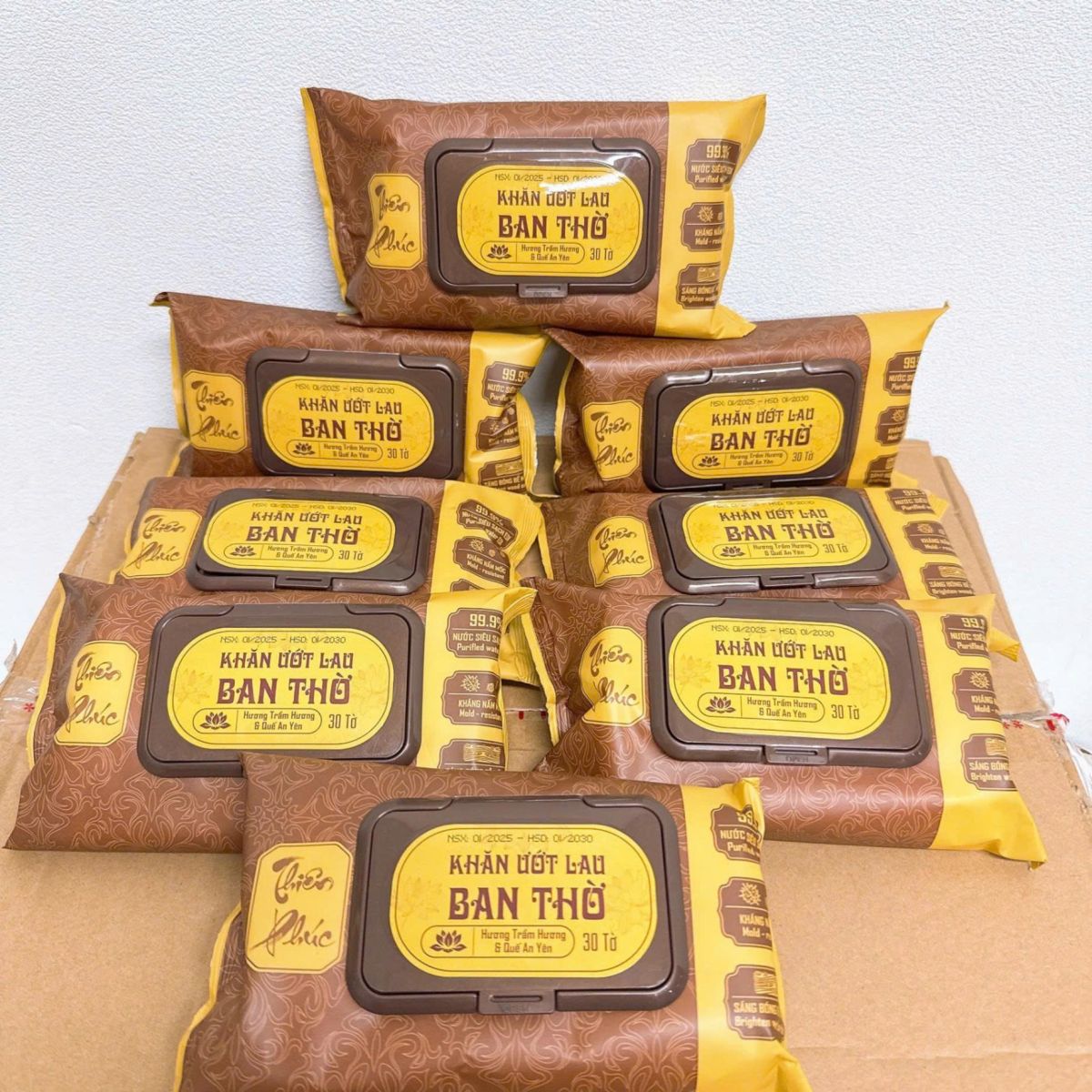 - Mỗi tờ khăn mang hương trầm nhẹ nhàng, dễ chịu, giúp không gian thờ thêm phần thanh khiết và tĩnh tại.