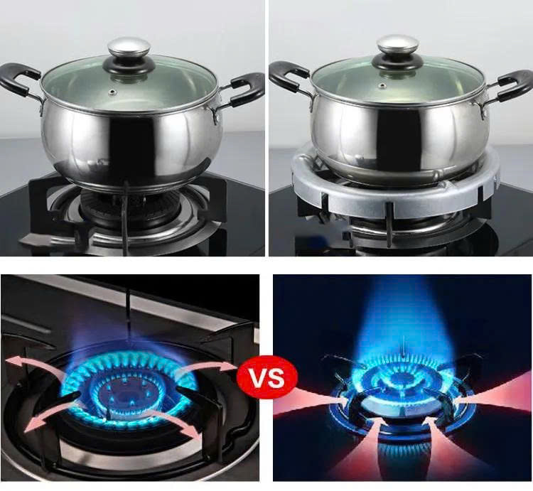 - Bạn chỉ cần đặt kiềng lên bếp, các chân kiềng tiết kiệm gas sẽ khớp với chân kiềng có sẵn của bếp tạo thành một khối thống nhất.