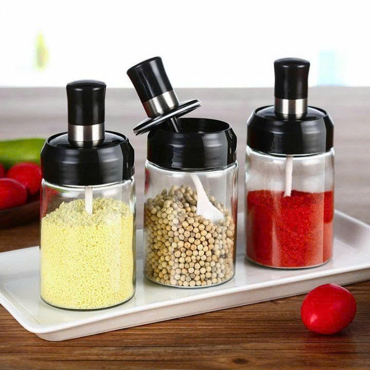 - Với bộ đựng gia vị nhỏ xinh này, góc bếp gia đình trở nên đẹp mắt và gọn gàng hẳn lên . Những chiếc lọ mang kiểu dáng hình trụ với đường cong mềm mại, được làm bằng thủy tinh cao cấp, trong suốt, giúp bạn thấy gia vị chứa ở bên trong và dễ dàng nhìn lấy ra sử dụng