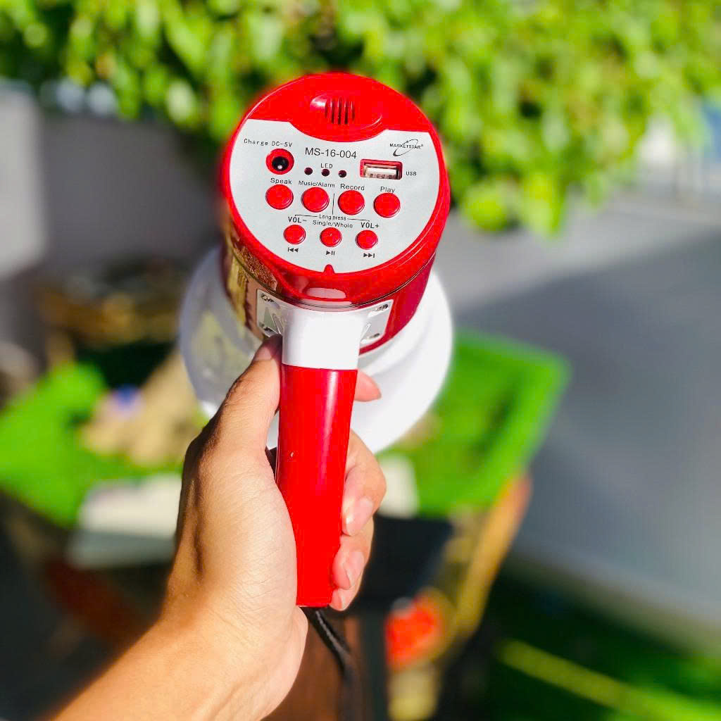 - Thời Gian Pin Lâu: Loa phóng thanh MS-16-004 được trang bị pin mạnh mẽ, cho thời gian sử dụng lâu dài, giúp bạn tận hưởng âm thanh mà không lo lắng về việc sạc pin thường xuyên.