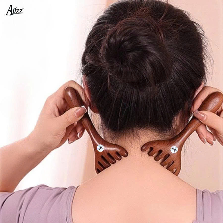 LƯỢC MASSAGE GỖ ĐÀN HƯƠNG 1 ĐẦU CHẢI AL-14397