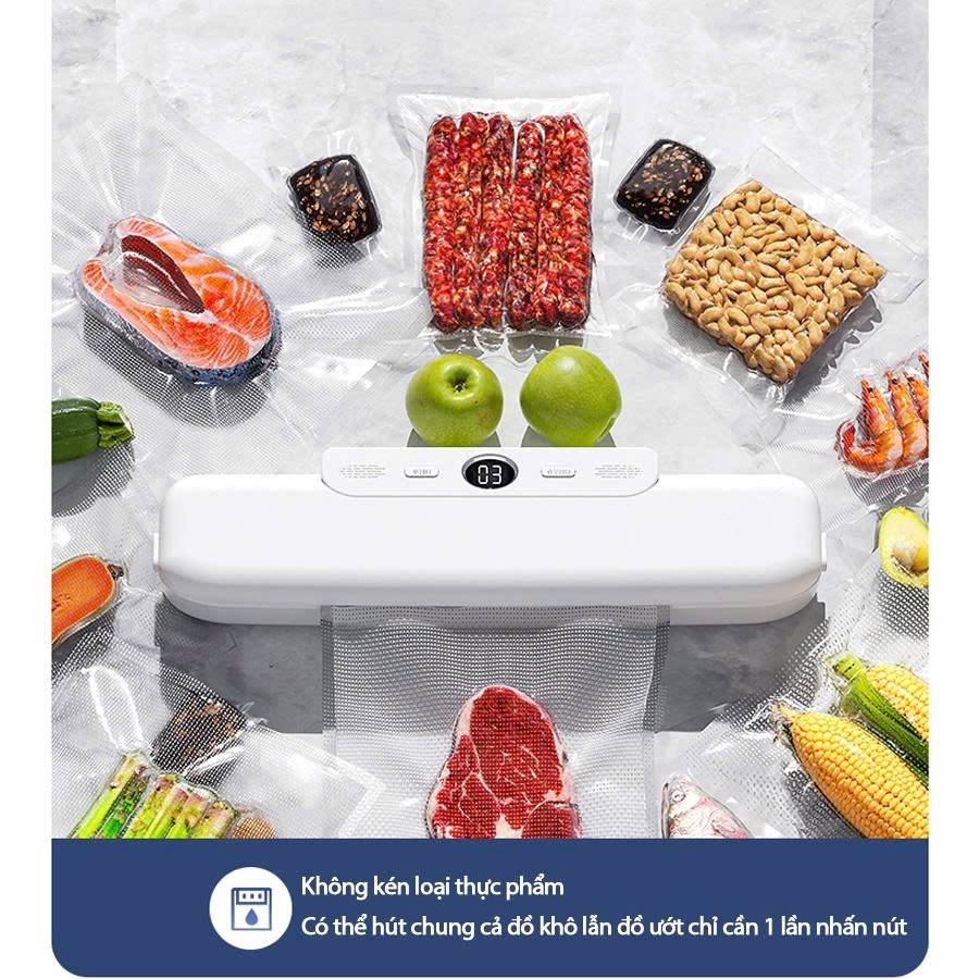 - Từ trái cây đến các loại ngũ cốc khác nhau, trái cây khô và hải sản cũng có thể được hút chân không và niêm phong.