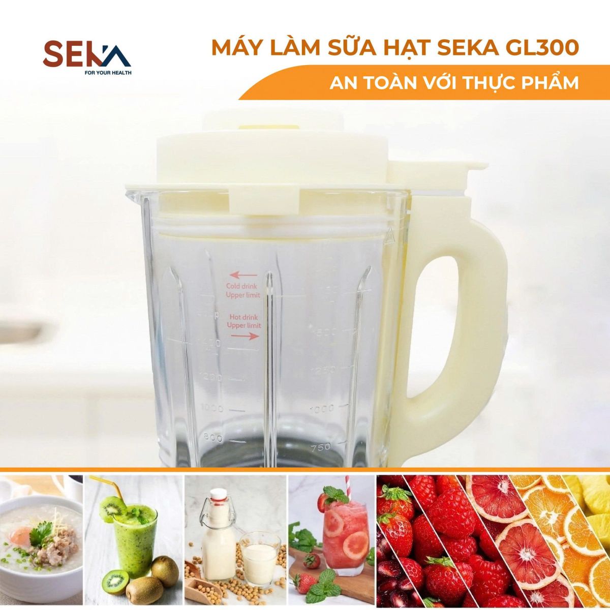 - Máy làm sữa hạt Seka GL300 tích hợp 12 chức năng cài đặt sẵn: sữa đậu nành, cháo nhuyễn, cháo nguyên hạt, nấu nước, súp, sữa ngô, ninh hầm, giữ ấm, ăn dặm, sinh tố, xay bột khô vệ sinh rất tiện sử dụng