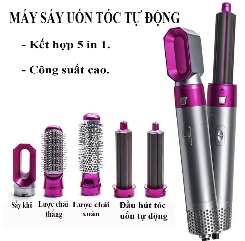 - Chỉ với 1 sản phẩm, bạn có thể tạo các kiểu tóc tại nhà thường xuyên như ngoài Salon mà không làm khô, sơ tóc Máy tạo kiểu tóc 5 in 1 trang bị động cơ kỹ thuật số với tốc độ quay lớn, quấn tóc bằng luồng khí để tạo kiểu mà không dùng nhiệt quá cao, giúp tạo nhiều kiểu tóc: uốn, tạo sóng, duỗi, sấy.