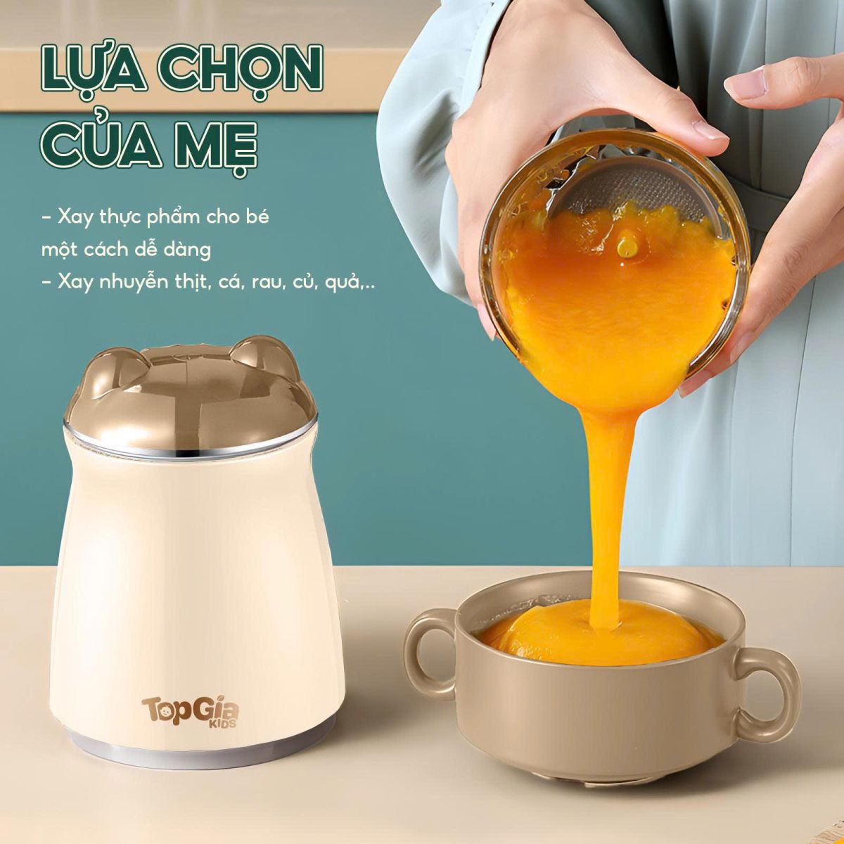 Với dung tích khoảng 200-250ml, máy xay cầm tay TopGia M7-02 cung cấp đủ lượng thức ăn cho bé trong 1-2 bữa, giúp thực phẩm luôn tươi ngon và đảm bảo dinh dưỡng. Dung tích này cũng phù hợp để chế biến các loại nước sốt, súp hoặc sinh tố với lượng vừa phải cho người lớn.