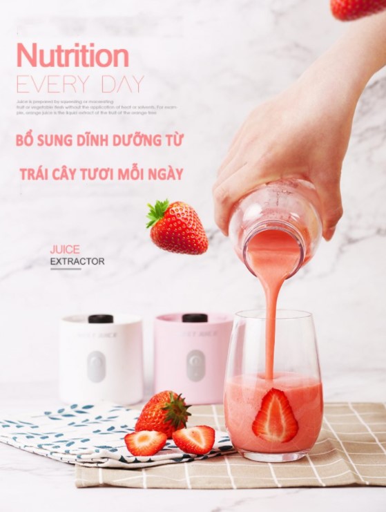 - Thiết kế thông minh và tiện lợi: Máy xay sinh tố Meet Juice sở hữu thiết kế cầm tay gọn nhẹ, giúp bạn dễ dàng mang theo bất cứ đâu, từ văn phòng đến phòng tập gym hay khi đi du lịch. Với chất liệu nhựa cao cấp và bền bỉ, máy không chỉ an toàn cho sức khỏe mà còn rất dễ dàng vệ sinh sau khi sử dụng. Kiểu dáng hiện đại và sang trọng, giúp sản phẩm trở thành một phụ kiện không thể thiếu trong căn bếp của bạn.