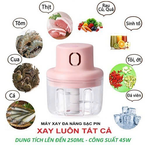- Khả Năng Xay Đa Năng: Với dung tích 250ml, máy xay này không chỉ dành riêng cho tỏi và ớt mà còn có thể sử dụng để xay nhuyễn nhiều loại gia vị khác như hành, gừng, gia vị khô, và nguyên liệu thực phẩm nhỏ như hạt tiêu, hạt đậu. Sự đa dạng này khiến máy trở thành một trợ thủ đắc lực trong việc chế biến các món ăn đa dạng.