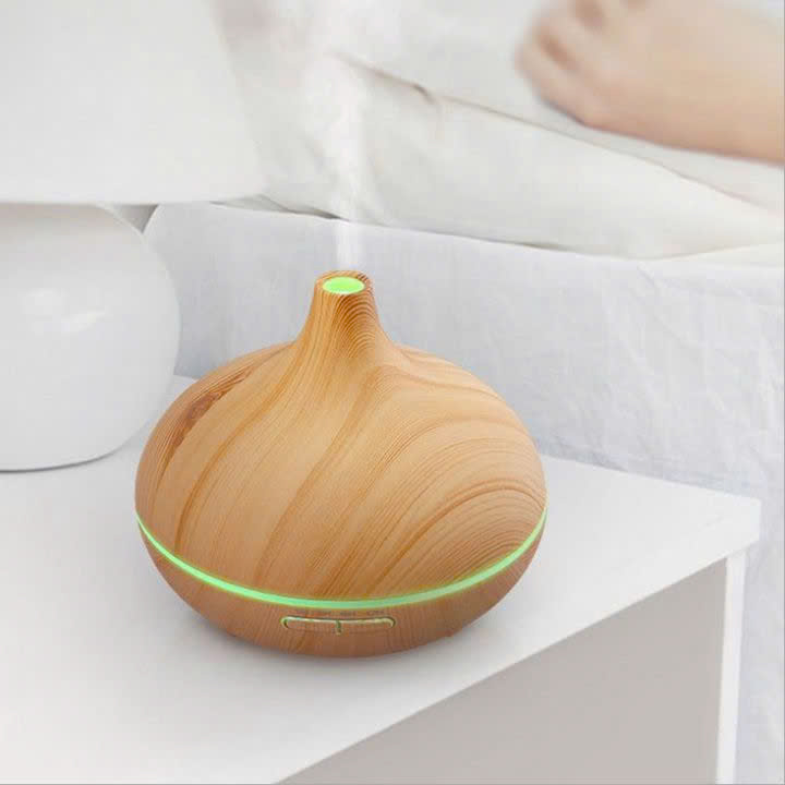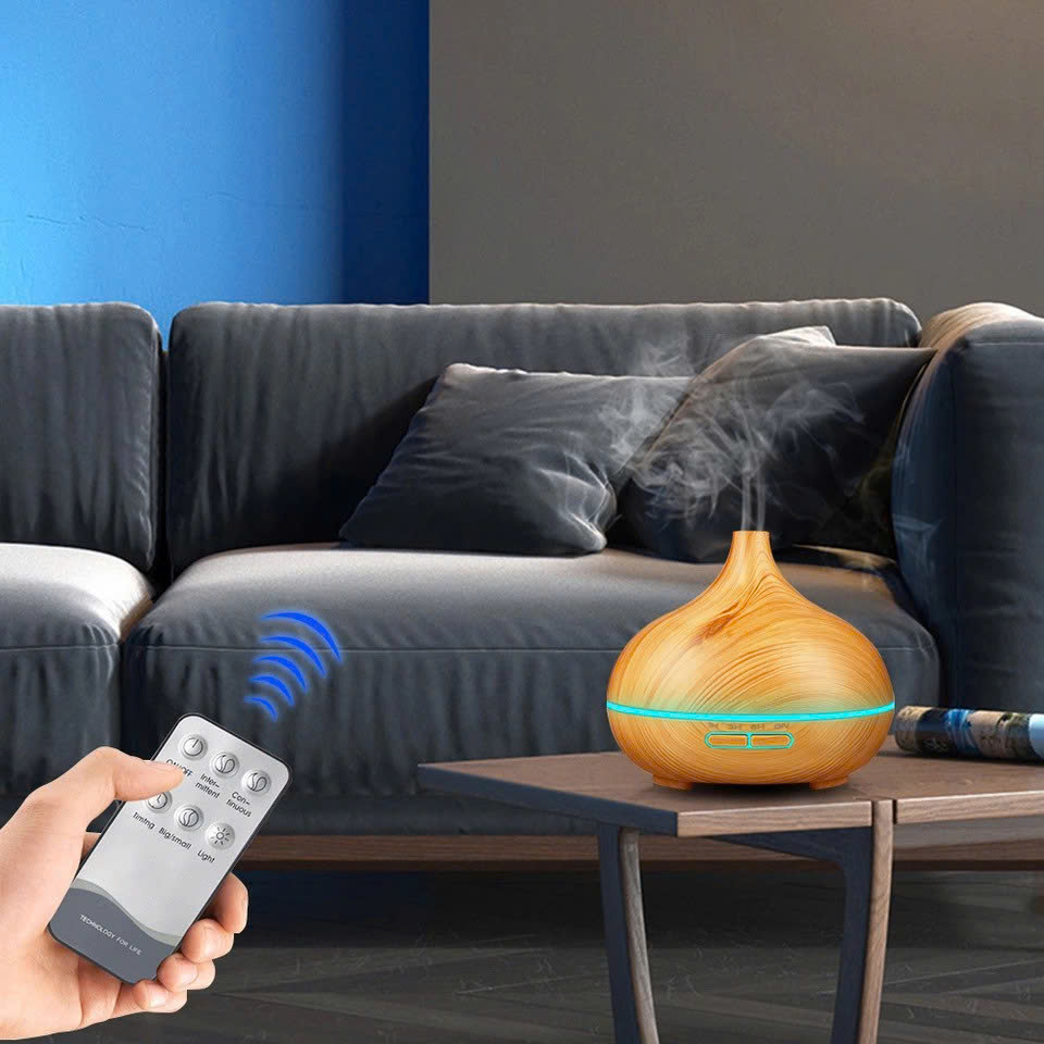 - Máy xông tinh dầu vân gỗ có điều khiển từ xa dùng công nghệ sóng siêu âm tiên tiến, dao động ở tần số cao biến nước thành sương mù tạo ra một bầu không khí nhẹ nhàng, thơm mát, thư giãn. Nhờ đó giữ được đặc tính trị liệu tinh tuý của tinh dầu nguyên chất.