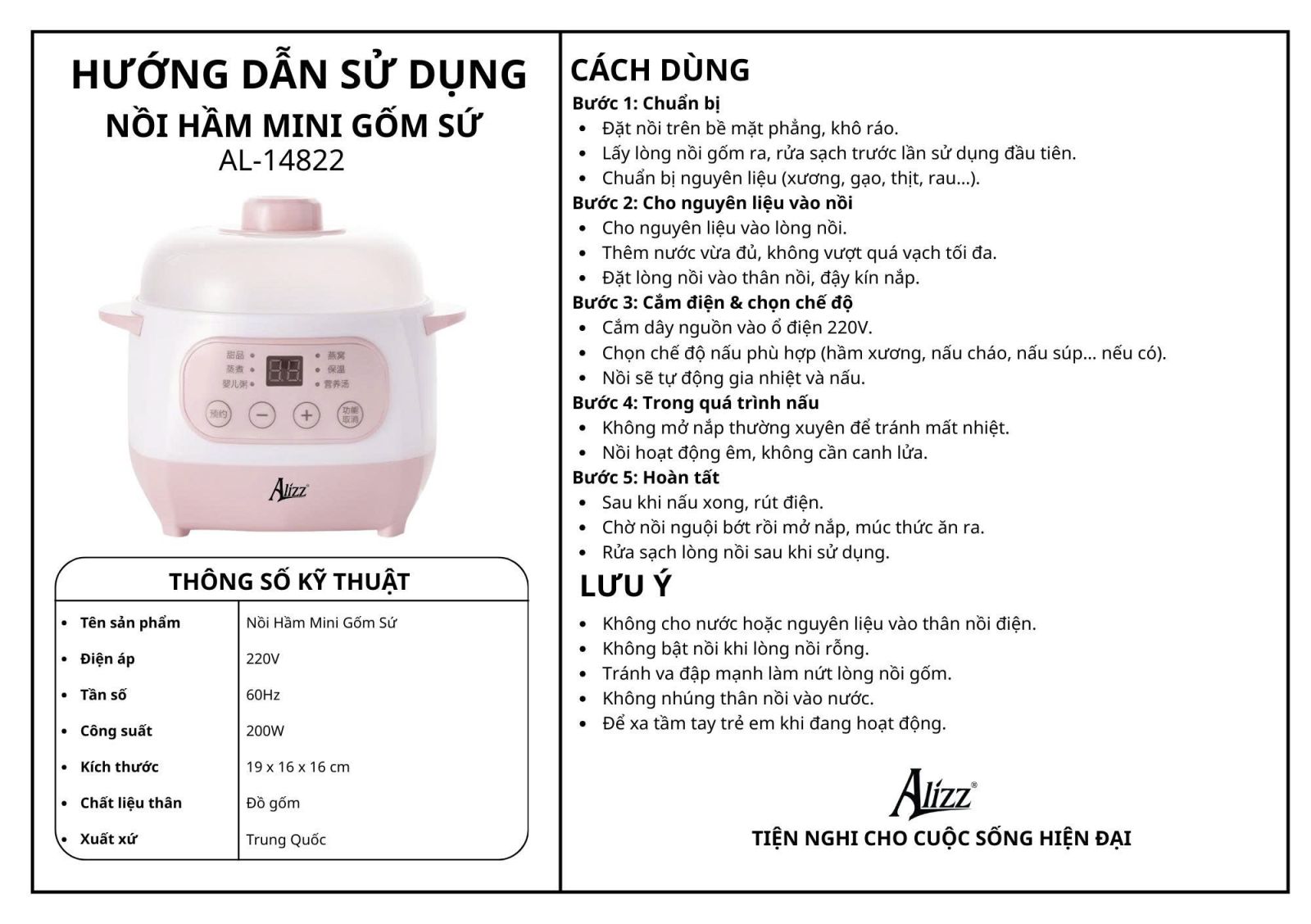 NỒI NẤU CHÁO CHẬM, CHƯNG YẾN ALIZZ AL-14822