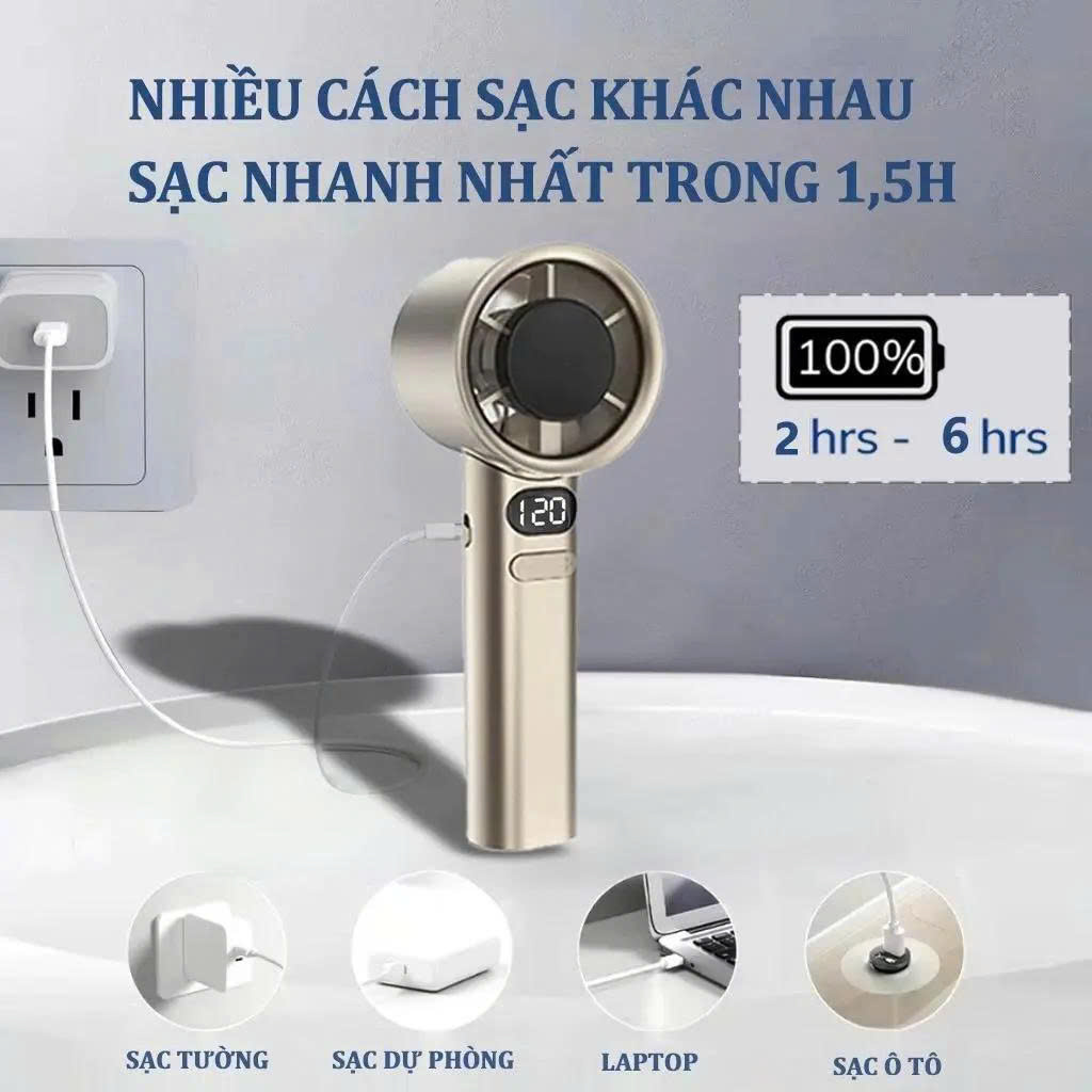 - Quạt có màn hình LED hiển thị mức gió, pin và các thông tin khác, giúp bạn theo dõi và điều khiển dễ dàng.