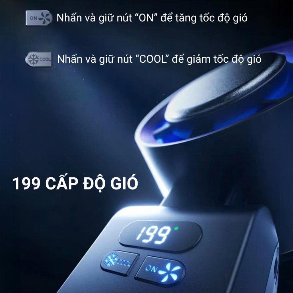 - Tốc độ gió: Tuỳ chỉnh 1 – 199 mức
